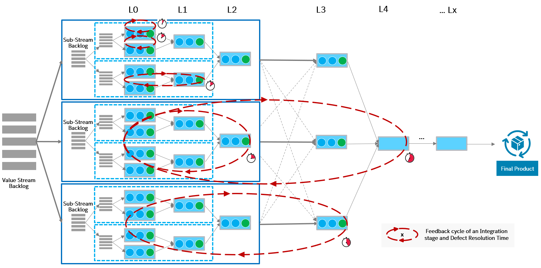 With each additional integration level, feedback loops become longer and more complex. Resolution now depends not only on fixing code, but on coordination across teams, synchronization of releases, availability of integration and test windows, and successful revalidation at higher stages. As a result, DRT increasingly reflects the health of the overall system: clarity of ownership, effectiveness of coordination, integration discipline, and the cost of moving fixes through the value stream.