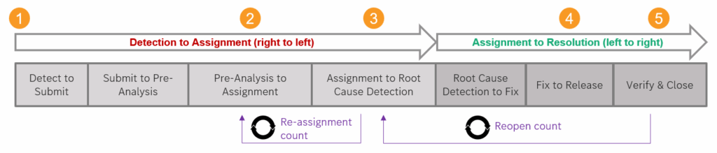 Measuring Defect Resolution Time across the individual phases of the resolution cycle makes visible where time is actually spent from detection to verified closure. By breaking the cycle into its constituent steps (see illustration above), organizations can see where delays accumulate, where work waits in queues, and where hand-offs or coordination slow the system down.