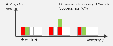 Deployment Frequency is calculated as the number of successful deployments (green bars) divided by the number of weeks shown.