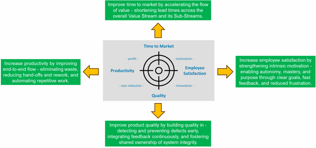Value Stream Optimization marks the third stage in our value stream lifecycle. After identifying and understanding the value stream, we reorganized it around value to build a solid foundation for performance. The next step is to systematically improve that performance and unlock the value stream’s full potential. To do this effectively, we first need to define what “optimized” actually means — by establishing a clear measurement system. Such a system provides the data to determine whether improvement is really happening and to identify exactly where in the value stream further optimization is needed. With this insight, we can analyze, learn, and continuously enhance the flow of value.
